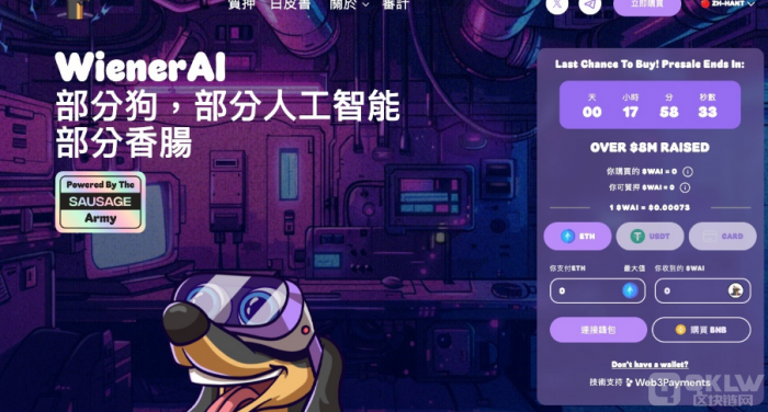 除了Bitcoin走勢,山寨幣早前的漲幅引起不少crypto投資人關注。 WienerAI($WAI)是一種開創性的人工智能AI迷因幣,它融合了人工智能、犬類忠誠以及香腸的吸引力,形成了一個獨特的全球運動。作為首個維納犬/狗/人工智能混合體,WienerAI不僅僅是一個數字資產——他是宇宙中最強大的賽博生物。憑借其精確的視覺模塊,致力于成為crypto榜單上的“頭號狗”,$WAI將釋放其獨特的質押獎勵,并建立起不可阻擋的香腸軍團。你準備好加入行列了嗎?