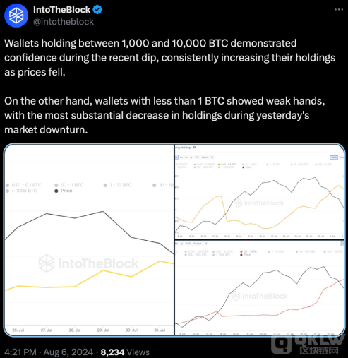 數(shù)據(jù)表明,Bitcoin長(zhǎng)期持有者在過(guò)去30天內(nèi)增持了約40.4萬(wàn)枚Bitcoin,相當(dāng)于230億美元。這一趨勢(shì)與IntTheBlock分析師的觀點(diǎn)一致,后者指出巨鯨利用價(jià)格下跌的機(jī)會(huì)進(jìn)行買入,而小型投資者則因?yàn)榭只哦娂姃伿邸?/p>