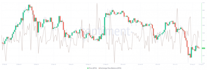 此外,Santiment的數(shù)據(jù)顯示,Ethereum的交易流量余額近期從-62,018飆升至20,707,顯示出進(jìn)入交易所的ETH數(shù)量顯著增加,暗示投資者的拋售活動(dòng)正在加劇。