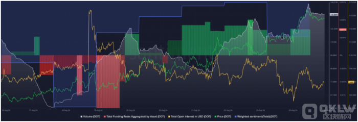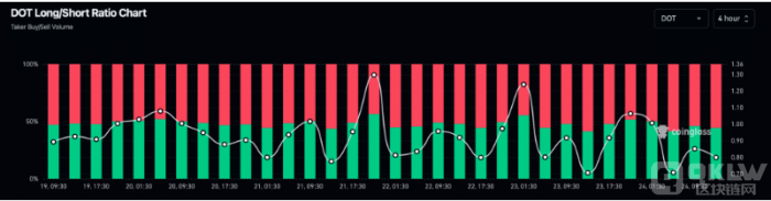 更值得關注的是,DOT 的多空比率正在下降,表明市場上的空頭頭寸開始增多,這可能會進一步影響價格穩(wěn)定性。