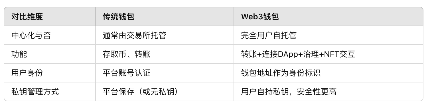 Web3錢包,是一種支持去中心化應用(DApp)連接、智能合約交互以及多鏈資產管理的數字錢包。它是用戶進入Web3世界的“通行證”,用戶通過它可以持有代幣、訪問DApp、參與治理、進行NFT交易等。