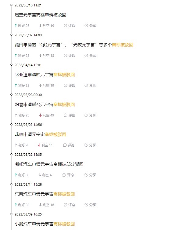 根據公開信息顯示,雖然各大企業和代理公司都在紛紛搶注元宇宙商標,但是大量的商標都被駁回,通過的寥寥無幾,即便是通過了初審,予以公告的元宇宙相關商標也被宣布無效。