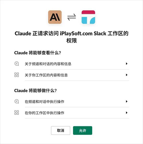 Slack 賬號(hào)和工作區(qū)都準(zhǔn)備好了就可以“一鍵安裝 Claude”了。但現(xiàn)在你需要先準(zhǔn)備一個(gè)美國(guó) IP 的網(wǎng)絡(luò)環(huán)境,然后「點(diǎn)擊 Add to Slack 這個(gè)鏈接」即可在 Slack 里添加 Claude 機(jī)器人應(yīng)用。看到對(duì)話框,點(diǎn)擊“允許”給予權(quán)限即可,至此我們就已經(jīng)全部搞定了,非常的簡(jiǎn)單!